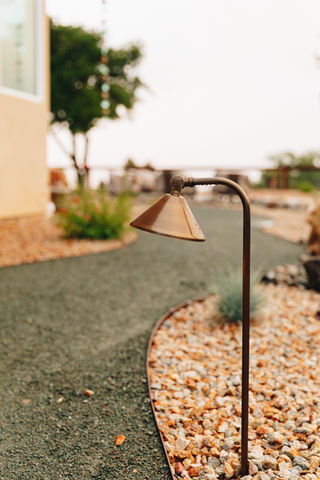 The Collet project began with a new home on a fresh lot of dirt and lots of creative freedom! We custom designed her yard to accommodate a 4' fence, blue decomposed granite paths, a gorgeous dry river bed, local golden rock, boulders, native planting and beautiful low voltage landscape lighting. We don't have favorites but this one is very close.